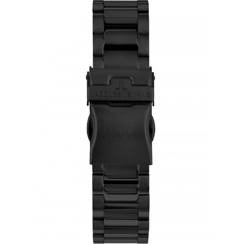 • Jacques Lemans 1-2119F turi solidų 44 mm pločio juodą korpusą, kuris dėl matinio paviršiaus legvai pritrauks aplinkinių dėmesį. Šio laikrodžio ciferblatas juodas su aiškiomis ir lengvai matomomis rodyklėmis o fiksuotas apvadas subtiliai išsiskiria iš korpuso.