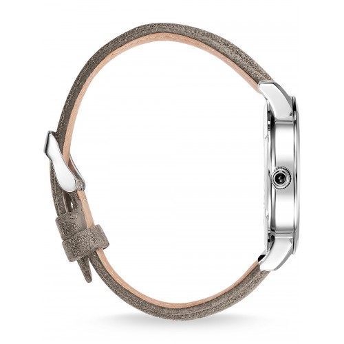 2. Sidabrinis korpusas ir aukso pilkos spalvos laikrodžio ciferblatas suteikia modernią ir stilingą išvaizdą.