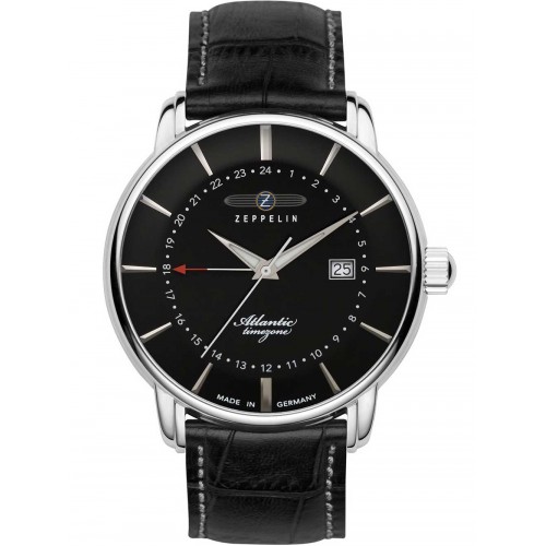 • Zeppelin 8442-2 turi solidų 41 mm pločio sidabrinį korpusą, kuris dėl poliruoto paviršiaus legvai pritrauks aplinkinių dėmesį. Šio laikrodžio ciferblatas juodas su aiškiomis ir lengvai matomomis rodyklėmis o fiksuotas apvadas subtiliai išsiskiria iš korpuso.